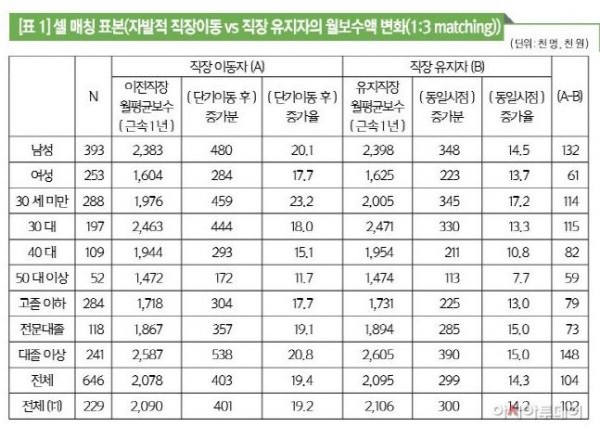 토대로 직장이동집단과 유지집단을 구성해 임금변화를 비교했다.