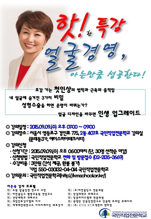 특강 공지【얼굴경영, 아는만큼 성공한다!】 9.9(수)