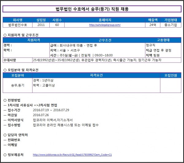 법무법인수호 채용정보 페이지 정보 작성자 관리자 작성일16-07-21 09:28 조회10,691회 댓글0건 관련링크 이전글 다음글 목록 본문 자료제공 잡코리아 링크 http://www.jobkorea.co.kr/Recruit/GI_Read/17833992?Oem_Code=C1 이전글 다음글 목록